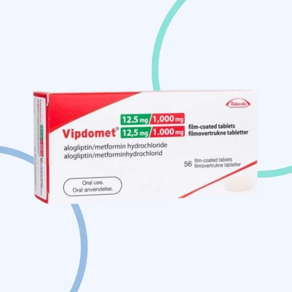 Because insulin is linked to the level of sugar in your blood, diabetic people end up with a much higher amount, which Vipdomet works to lower and control. Vipdomet contains two different medicines, called alogliptin and metformin, Vipdomet is taken when it is not possible to control blood sugar through diet, exercise, and other oral anti-diabetic medications such as metformin alone, insulin alone or metformin and pioglitazone were taken together. The recommended dose is one tablet twice a day. If you have reduced kidney function, your doctor may prescribe a lower dose that may need to be given as separate tablets of alogliptin and metformin. Swallow the tablets whole with water. You should take this medication with food to reduce the chance of an upset stomach.
